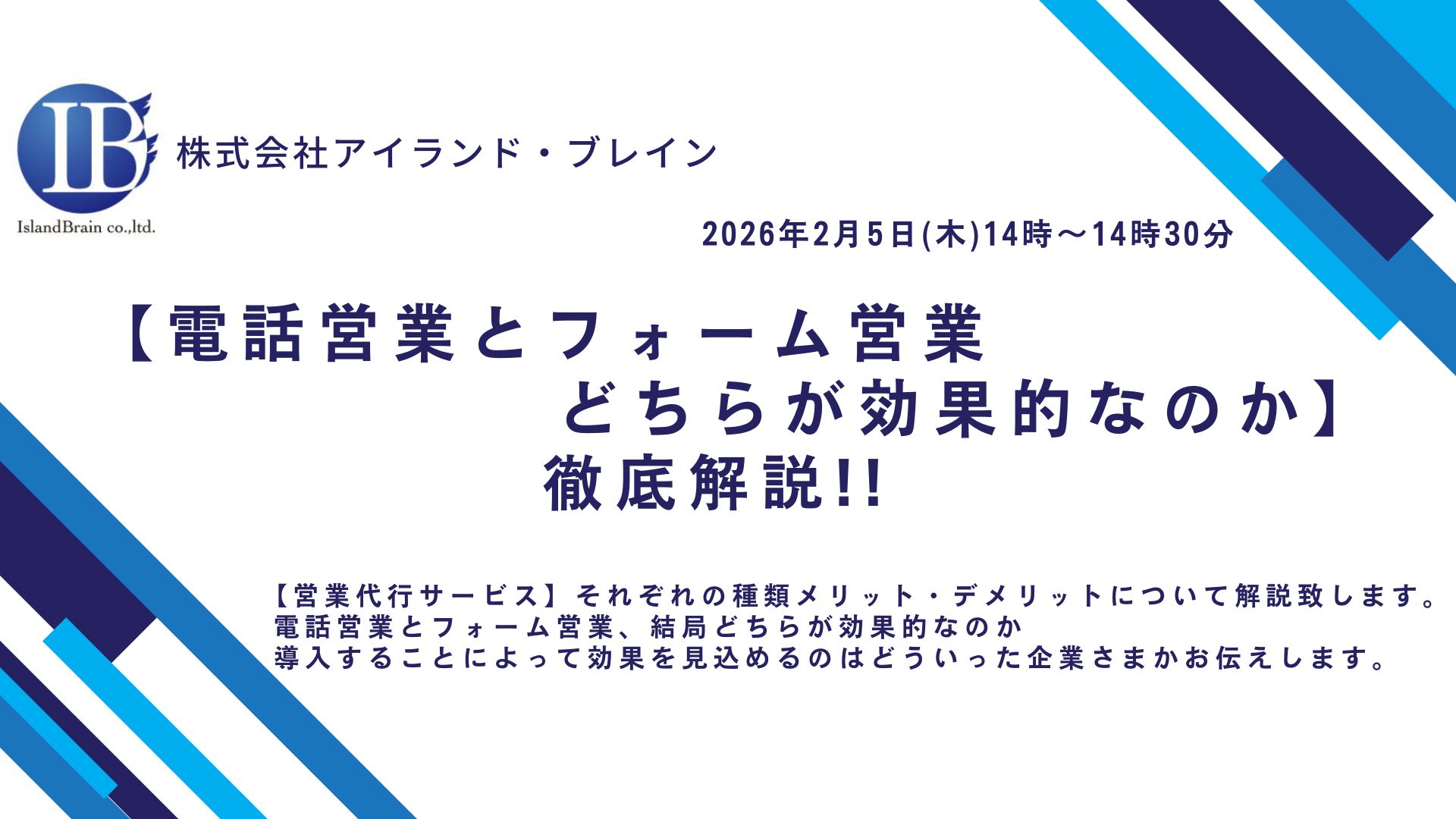 参加募集中 2026.02.05(木) 14時〜14時30分 【電話営業とフォーム営業、どちらが効果的なのか】徹底解説!! 【営業代行】それぞれの種類・メリット・デメリットについて解説致します。 電話営業とフォーム営業、結局どちらが効果的なのか 導入することによって効果を見込めるのはどういった… このウェビナーに参加する
