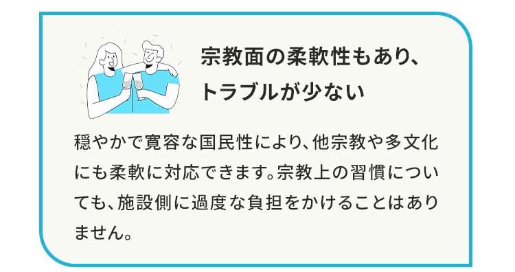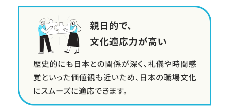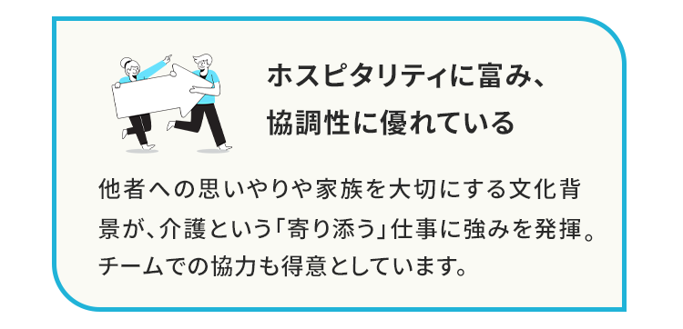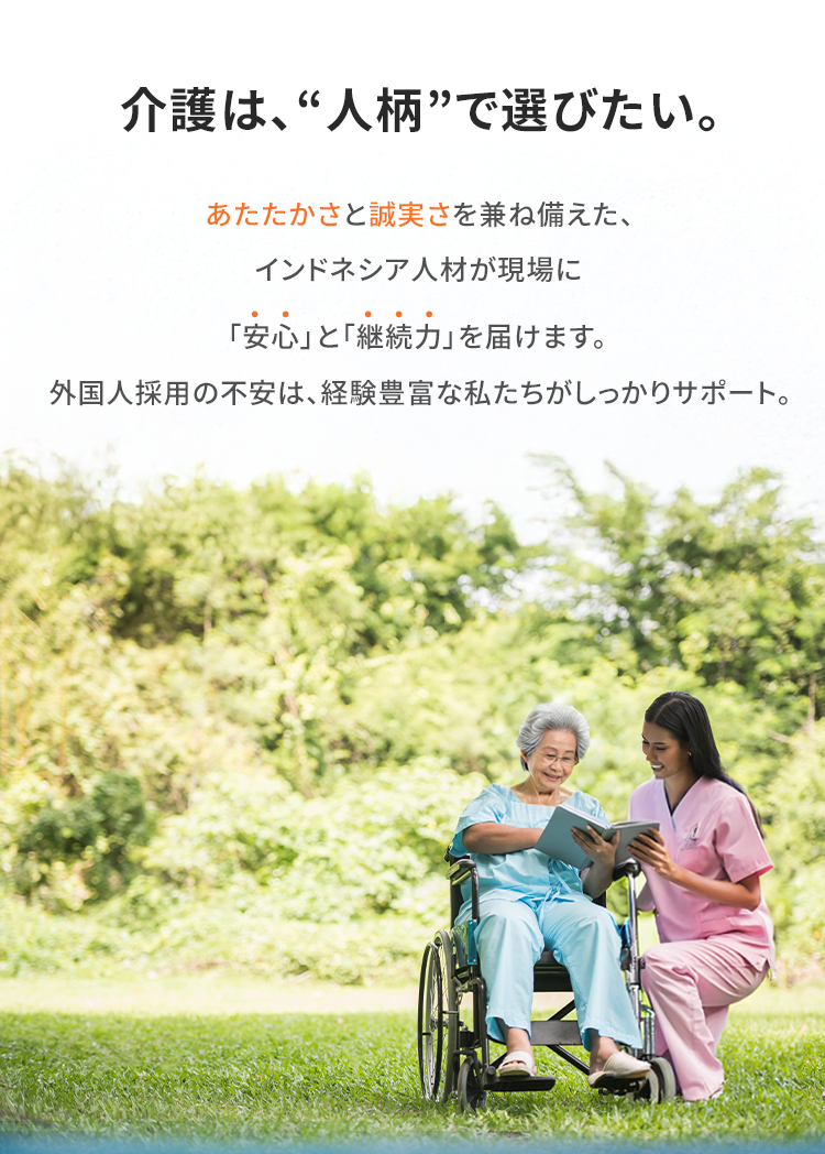 インドネシア人材は、介護の現場において非常に高い適性を持っています。